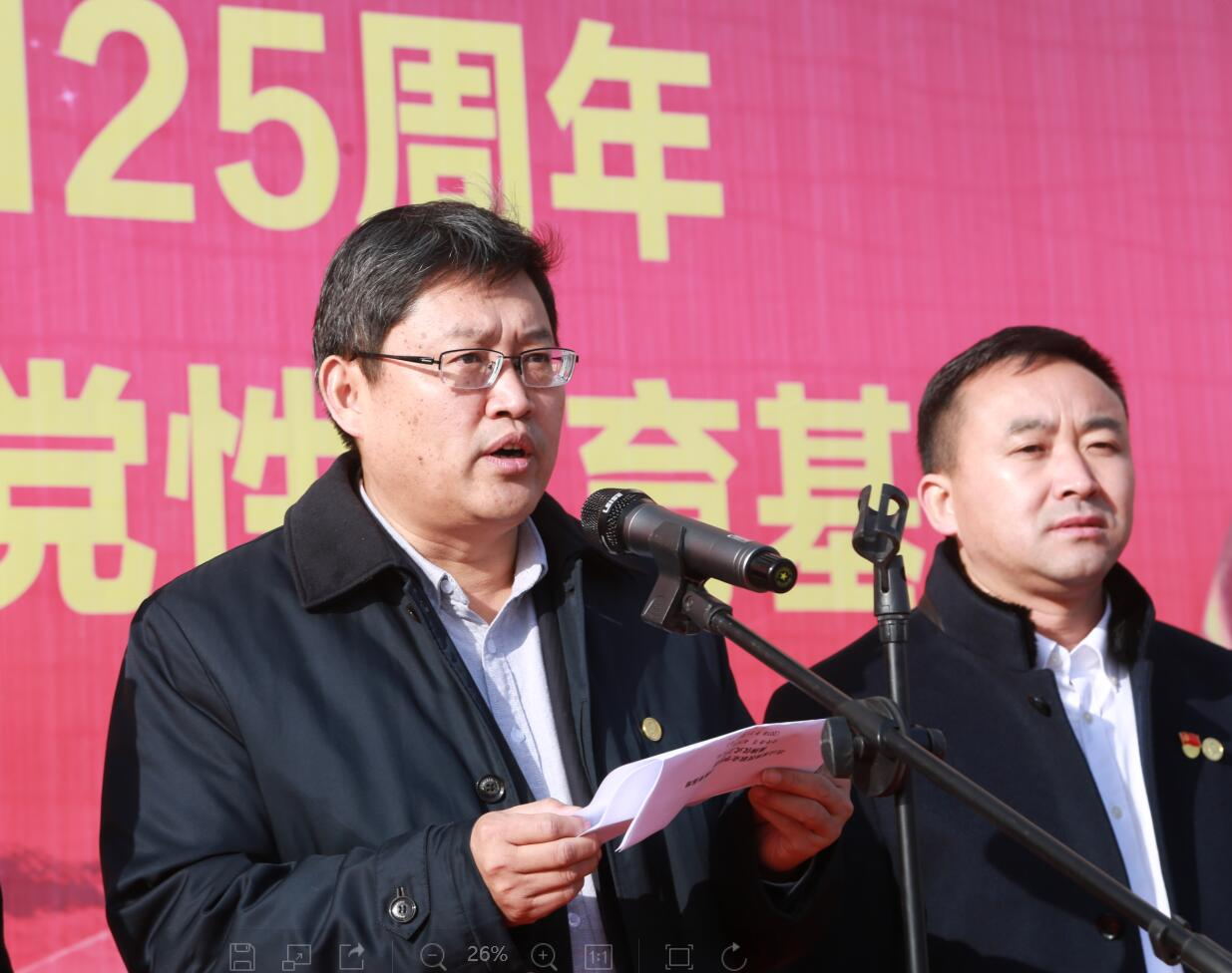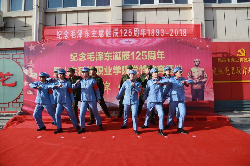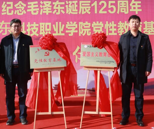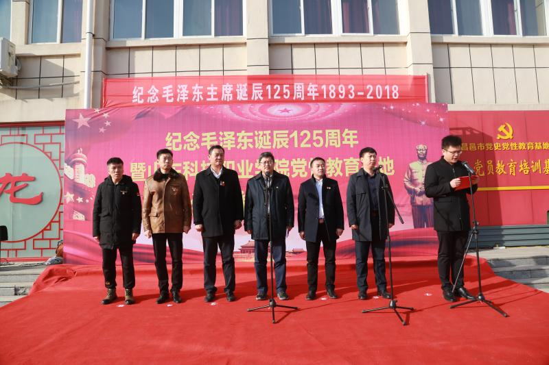 12月26日,革命老区龙池镇举办纪念毛主席诞辰125周年,太阳成集团tyc33455cc爱国主义教育、党性教育基地揭牌仪式在昌邑市龙池镇举行。太阳成集团tyc33455cc党委委员、副院长丁文利,昌邑市龙池镇党委副书记、镇长杨启乐分别在仪式上致辞。我院学生工作处直属党支部书记、处长,基础部(思政部)直属党支部副书记、主任,机电工程系党总支书记,昌邑市龙池镇人大副主席王海洋,昌邑全武红色文化收藏博物馆馆长王全武;以及龙池镇全体机关干部、各村党支部书记、村主任、太阳成集团tyc33455cc师生代表参加本次活动;我院机电工程系牵头组织本次仪式。