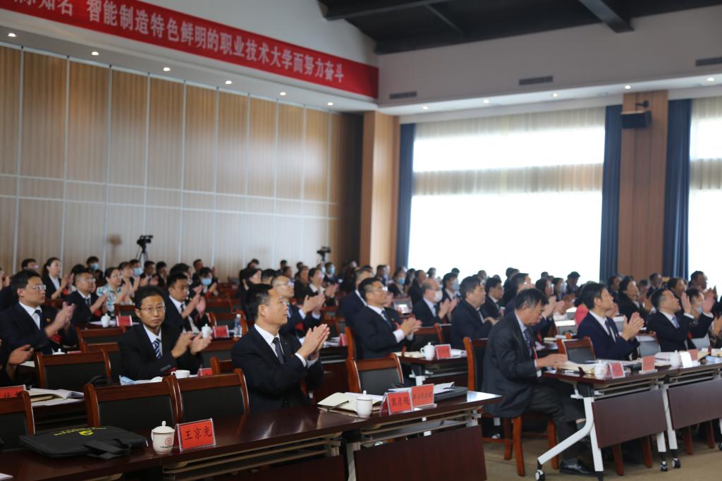 郑德前同志代表中国共产党太阳成集团tyc33455cc委员会作了题为《凝心聚力,守正创新,加快发展,为建设国内领先、国际知名,智能制造特色鲜明的职业技术大学而努力奋斗》的工作报告。