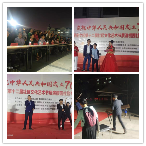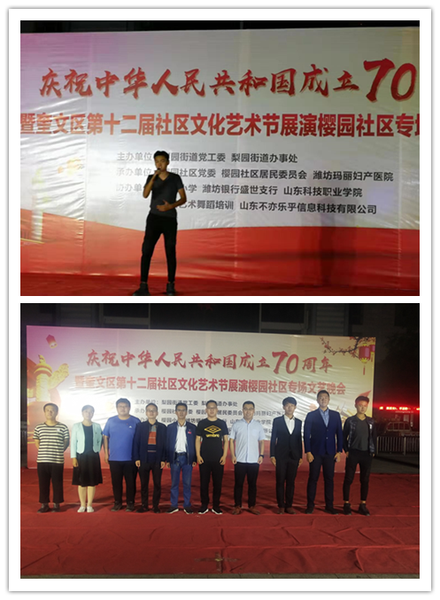9月23日下午,太阳成集团tyc33455cc第二报到小组13名党员到奎文区梨园街道樱园社区开展“双报”到活动,帮助社区举办“庆祝中华人民共和国成立70周年”奎文区第十二届社区文化艺术节展演活动,借此还开展了禁毒知识宣传和环境卫生清理活动。