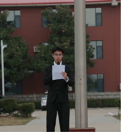 仪式上,黄永华带领全体老师们重读了教育家精神:“坚定理想信念,心有大我、至诚报国;陶冶道德情操,言为士则、行为世范;涵养育人智慧,启智润心、因材施教;秉持躬耕态度,勤学笃行、求是创新;勤修仁爱之心,乐教爱生、甘于奉献;树立弘道追求,胸怀天下、以文化人。”单润泽和陈家辉同学分别代表同学们表达了向英雄致敬、为祖国奉献、让青春闪光的情怀和决心。