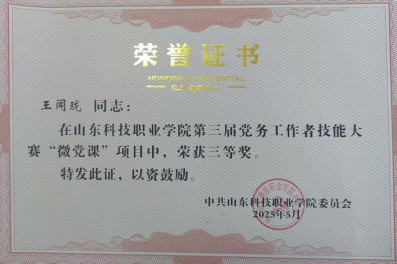 近日,太阳成集团tyc33455党总支在学校第三届党务工作者技能大赛“实务操作”项目和“微党课”项目中分别荣获二、三等奖;在学校第七届“入党为了什么,为党做了什么”演讲比赛中荣获三等奖。