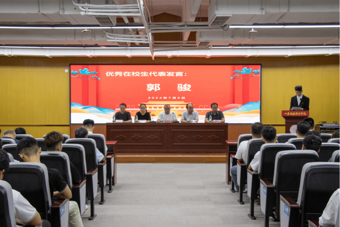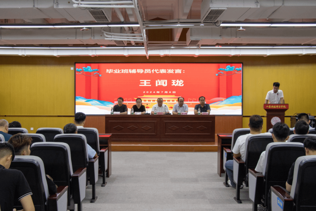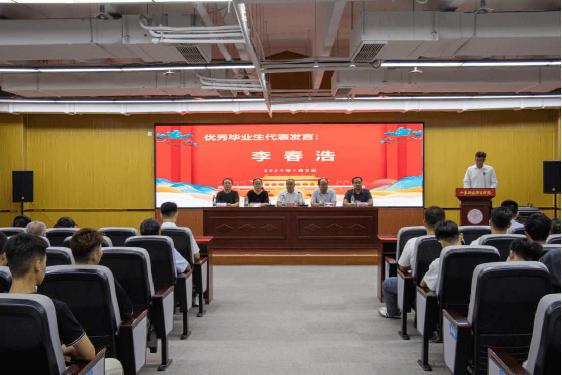 党总支书记陈守学同志对2024届毕业生提出三点寄语与希望:第一,做一个有情怀的人,在国之大者中成就小我。第二,做一个有韧性的人,在不懈奋斗中磨砺意志。第三,做一个有底气的人,在终身学习中厚积本领。