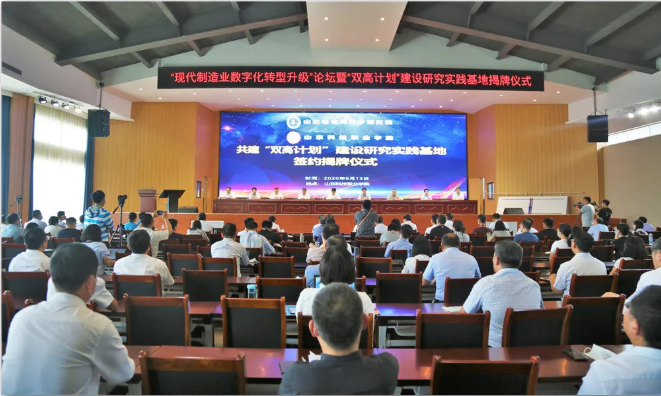 6月13日上午,学院与山东省教育科学研究院共建“双高计划”建设研究实践基地揭牌仪式在报告厅举行,仪式之前还举办了“现代制造业数字化转型升级”论坛。山东省教育厅总督学邢顺峰、山东省工业和信息化厅副厅长王新生、山东省教育科学研究院院长申培轩、中国纺织服装教育学会常务副会长倪阳生、学院党委书记郑德前、山东省学生就业创业教育咨询中心主任王志刚、潍坊市教育局局长徐友礼、潍坊市教育局二级调研员李广敬领导出席揭牌仪式,仪式由学院党委副书记、院长刘桂玉主持。会上,申培轩和刘桂玉代表双方在台上签署共建协议。