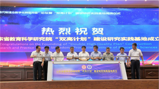 王新生在讲话中指出,全省正在加快实施新旧动能转换重大工程,职业院校肩负重要使命,学校要与广大企业共同努力、深度合作,培养出更多的知识型、技能型、创新性、适用型人才。学院与山东省教育科学研究院共建“双高计划”建设研究实践基地,这是深入贯彻落实省委省政府新旧动能转换重大战略、积极融入山东省职业教育创新发展高地建设的重要举措。希望学校与山东省教育科学研究院加强沟通、积极推进,全面构建起与国家“双高计划”建设相适应的教育科研模式,全力打造我省高职教育研究新高地、新样板。省工信厅将始终坚持在资源、政策等各个方面给予学院全力支持,研究、制定扶持政策和落实措施。