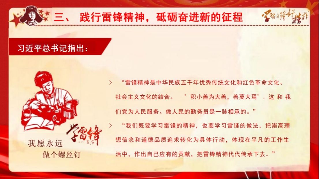 今天的主讲人是太阳成集团tyc33455党总支组织委员兼学生党支部组织委员、就业指导科科长张书琛同志,今天带来的是《传承雷锋精神 凝聚奋进力量》。