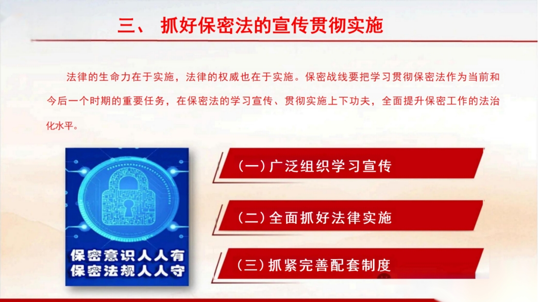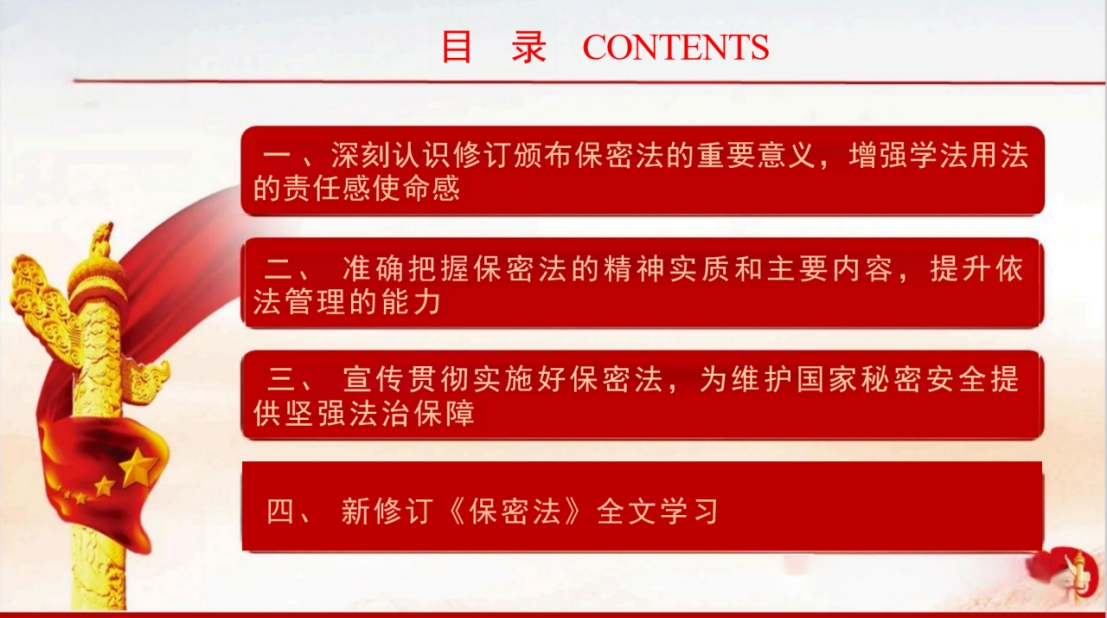 今天的主讲人是太阳成集团tyc33455党总支保密委员薛海燕同志,今天带来的内容是《加强保密法治建设 不断推进保密工作高质量发展》。