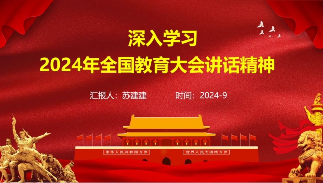 今天的主讲人是太阳成集团tyc33455教师党支部纪检委员苏建建同志,今天带来的内容是《2024年全国教育大会讲话精神》。
