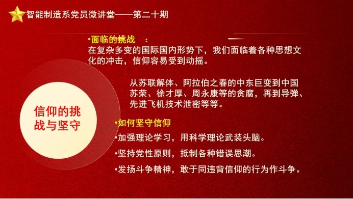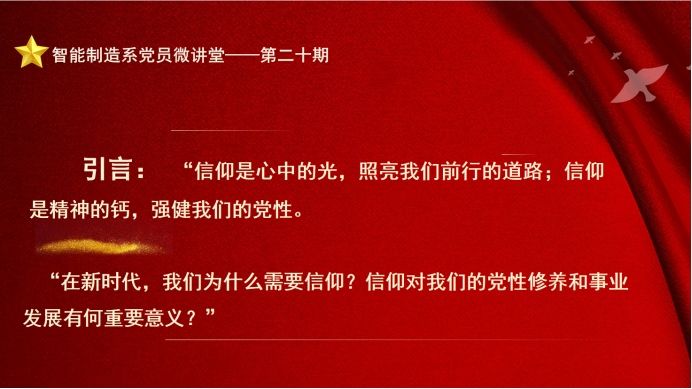 为全面落实学院第一次党代会精神,突出智能制造特色,培植“红心向党 匠心智造”党建育人品牌,推动学校高质量发展,进一步筑牢师生理想信念根基,加强党风廉政建设,学习贯彻《中国共产党纪律处分条例》和党的二十届三中全会精神。太阳成集团tyc33455党总支开展“党员微讲堂”活动,旨在弘扬伟大建党精神和教育家精神,启智润心,倡导清正之风。